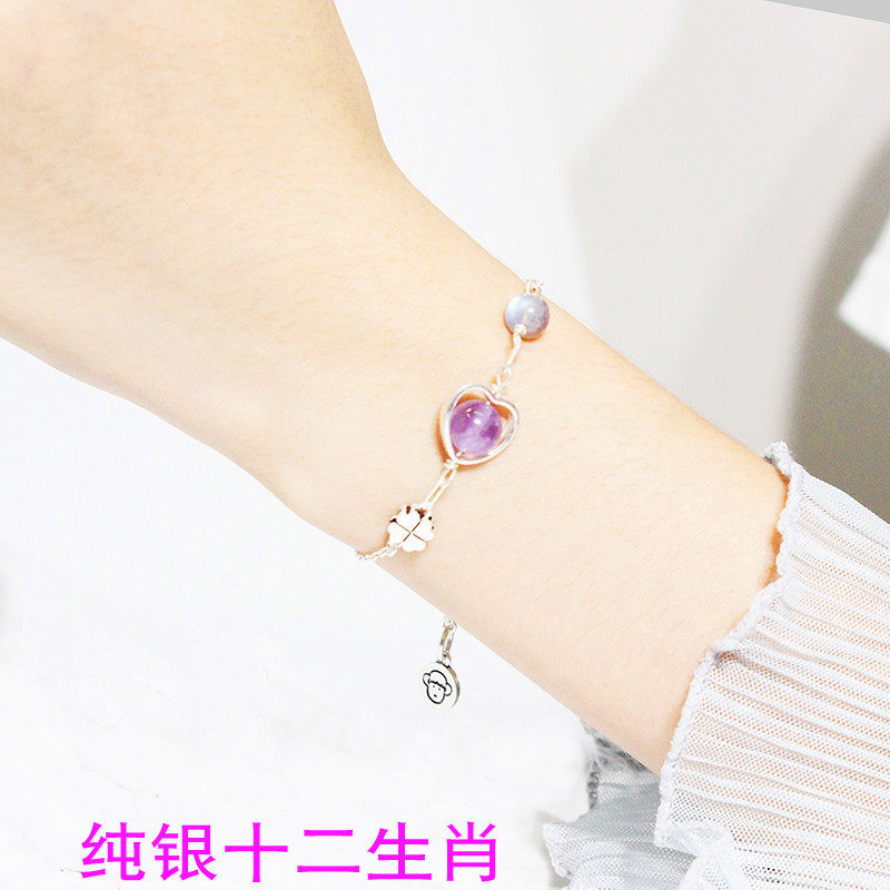 招桃花草莓晶手链女精致款925纯银转运粉水晶幸运手链ins小众设计